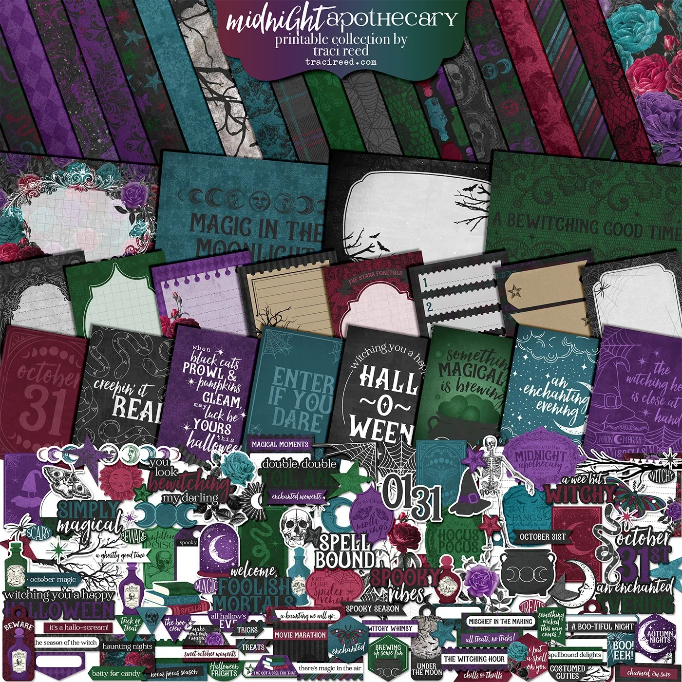 The Midnight Apothecary collection is here to help you capture every moody, magical detail of October. Inspired by gothic aesthetics and a love for all things spooky, this kit combines deep jewel tones, classic black, and just the right amount of witchy charm. It’s perfect for documenting the spooky side of Halloween, but it also works beautifully for magical fall evenings, magical memories, or simply adding a touch of deep color to your Halloween albums!