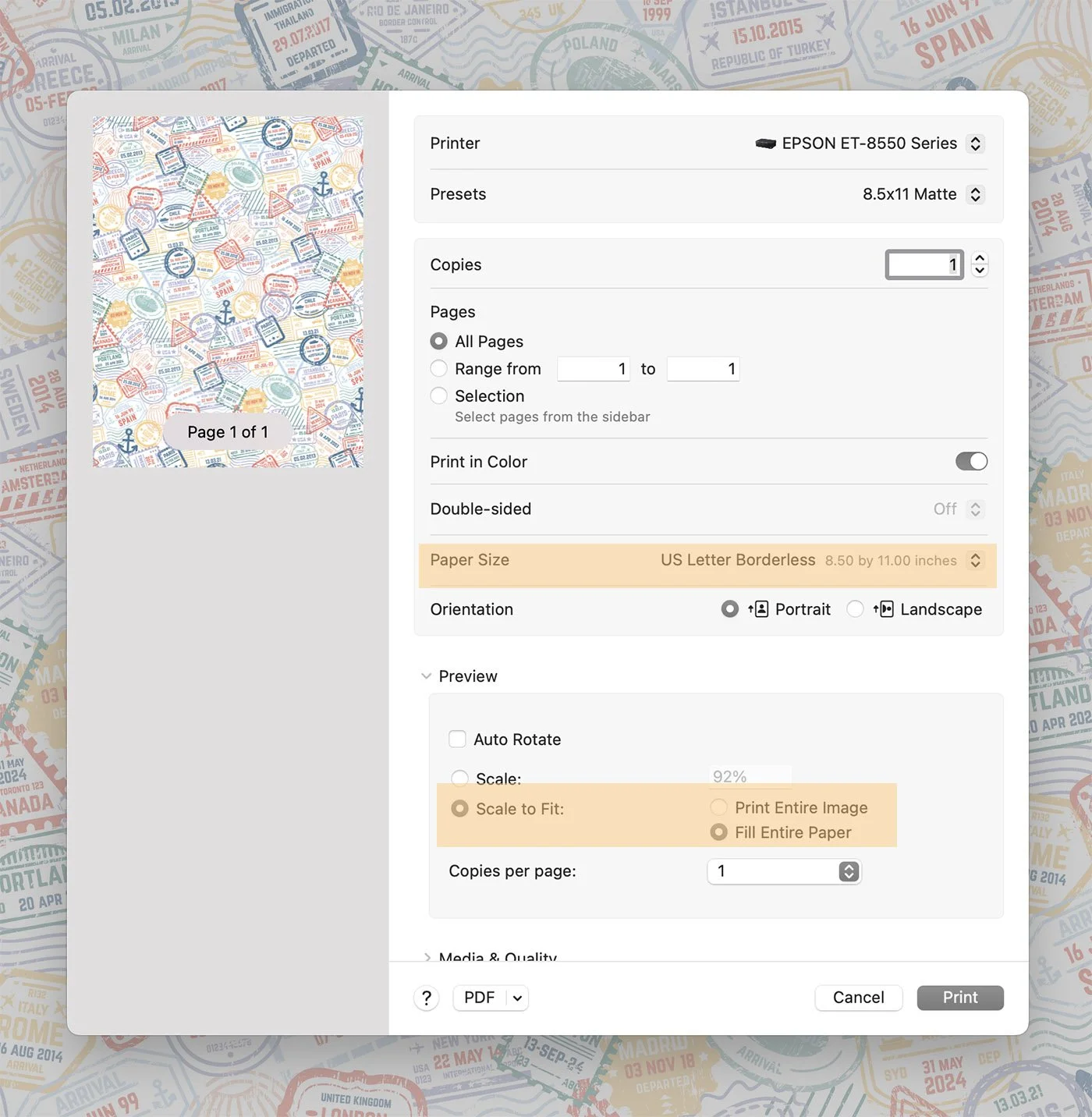 Make sure to select borderless printing if your printer allows it, and you’ll get a beautifully full page at 8.5x11 or A4.