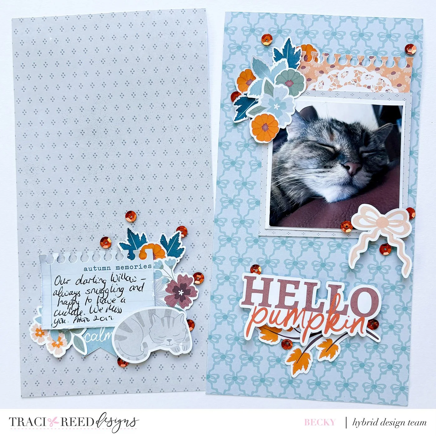 Inside, you’ll find patterned papers, journaling cards, and illustrations that celebrate all the little joys of the season — lattes, sweaters, falling leaves, and afternoons curled up with a blanket (and maybe a furry friend). Thoughtful phrases and autumn icons make it easy to create layouts filled with warmth, gratitude, and seasonal magic.