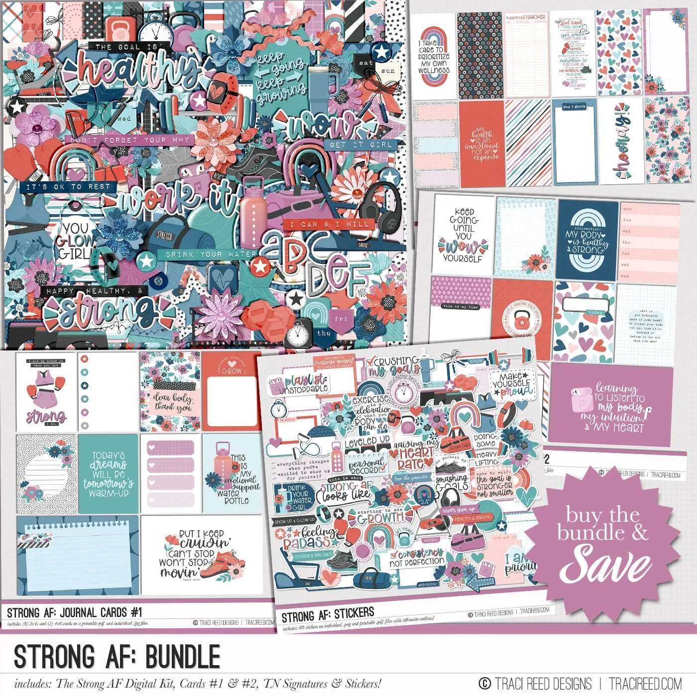 Celebrate the stories of your strength and self-love with the Strong AF collection Strong AF is all about honoring movement, self-kindness, and the beauty of taking up space, with printable papers, affirmation stickers, cards, and more to help you document your journey without shrinking into the margins.