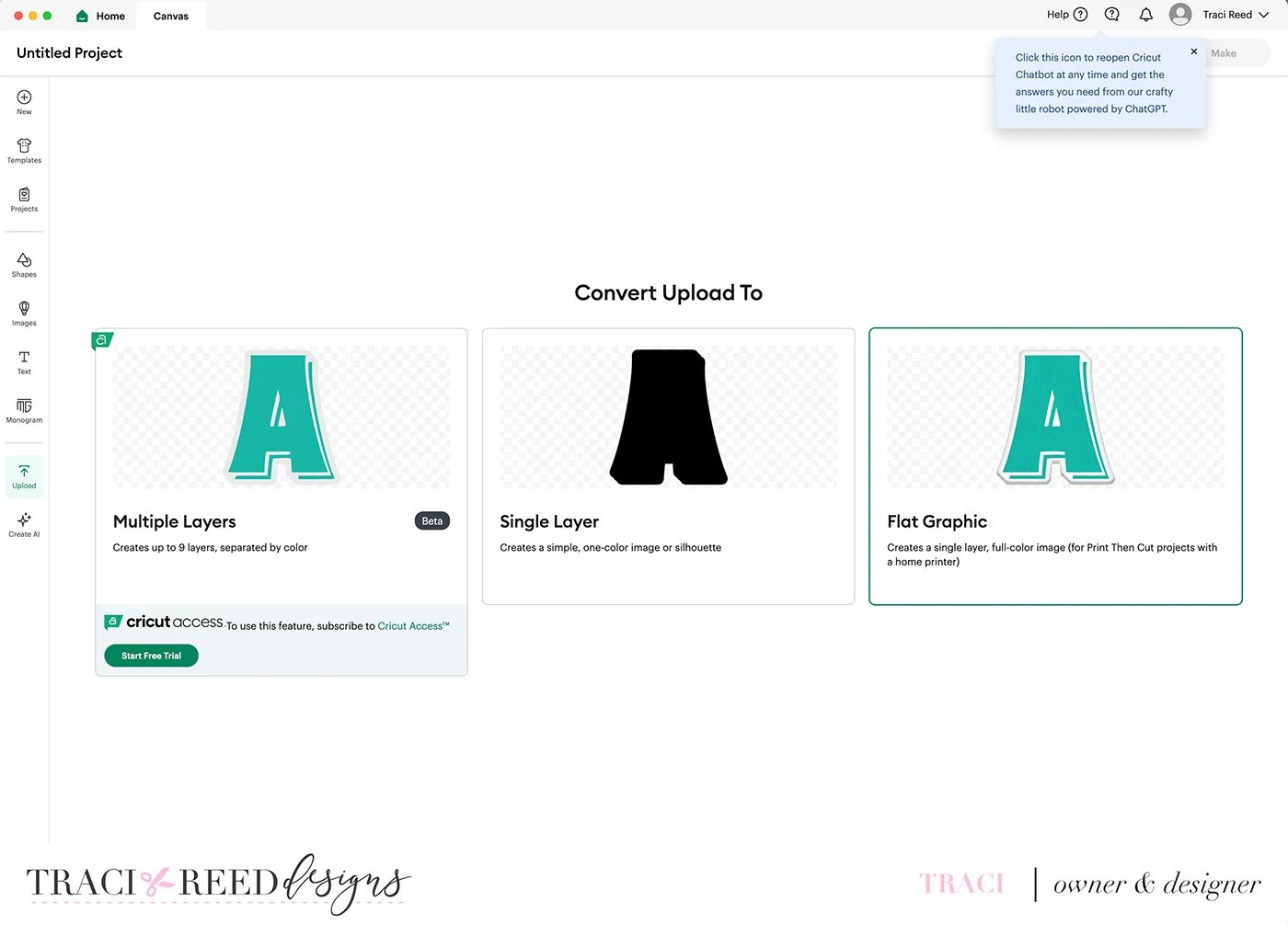 Import the letters you need for your title using the Upload Image feature in Circuit Design Space.